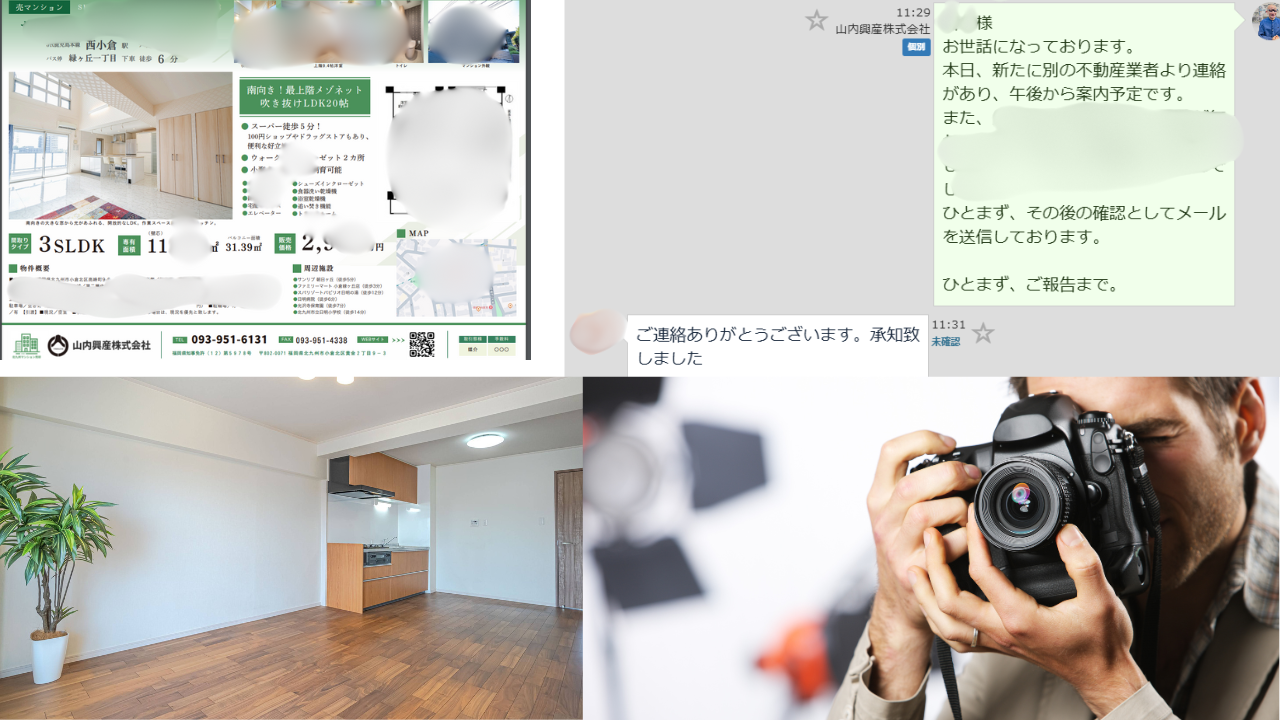 情報は囲いこまずレインズで全国に公開。他社の力も借りて売却。問い合わせ内容はその都度LINEで報告します。
